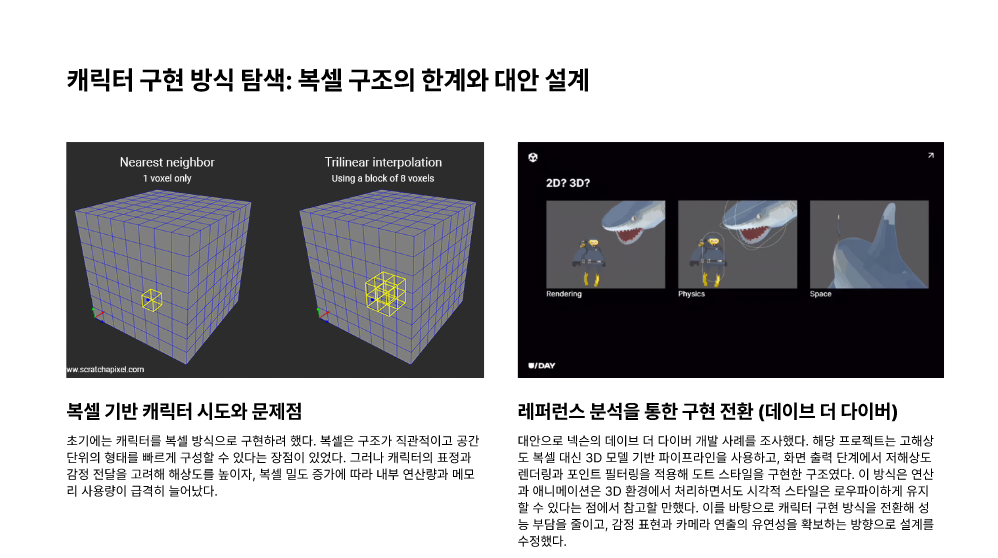 아트 구현하는 과정에서의 랜더링 문제점의 발견과 어떤 자료를 통해 문제해결을 했는지에 대해 중점을 두었다.